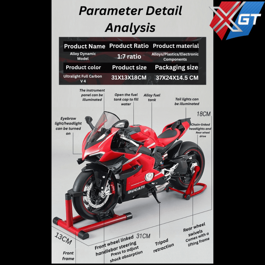1:6 Oversized Ducati Panigale V4 Die-Cast Alloy Motorcycle Model – OEM Licensed Collectible Experience premium craftsmanship and striking design with this finely detailed 1:6 scale Ducati Panigale V4 die-cast motorcycle model. Built for collectors and enthusiasts, it features a sturdy alloy body combined with precision-molded